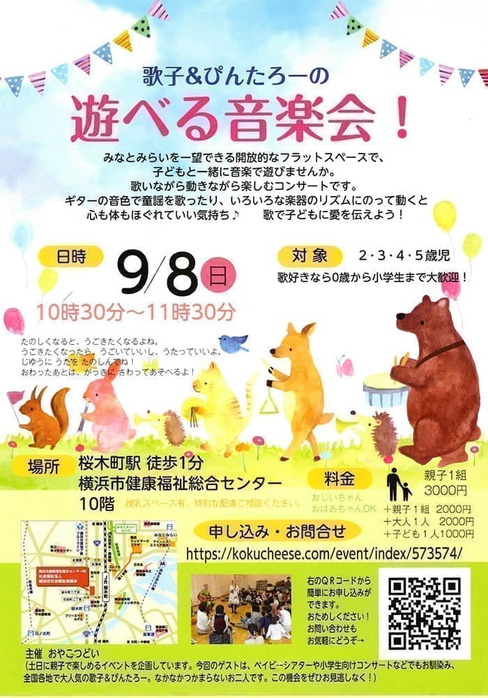 参加費:親子1組(2名)¥1,500 追加子ども1名¥500 追加大人1名¥1,000