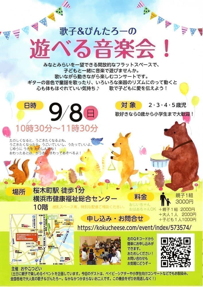 参加費:親子1組(2名)¥1,500 追加子ども1名¥500 追加大人1名¥1,000