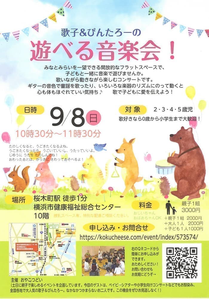 ・出演:歌子(ヴォーカル)&ぴんたろー(打楽器とギター)