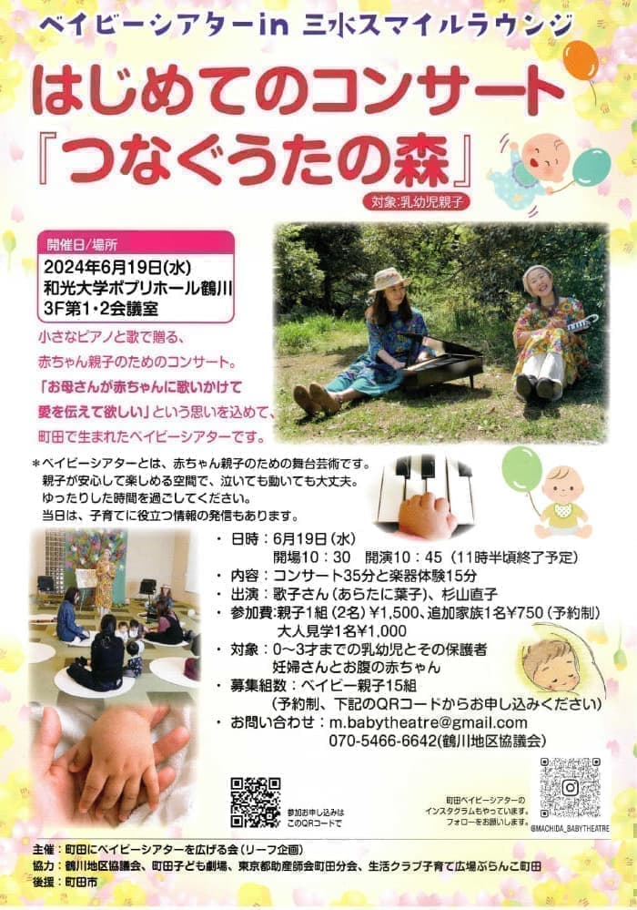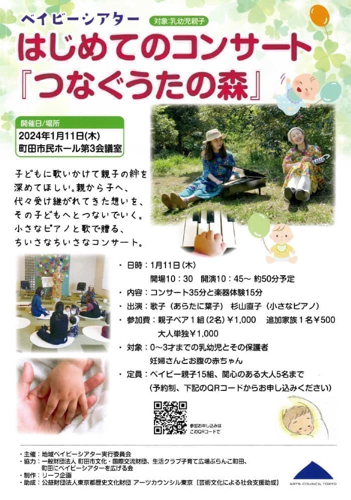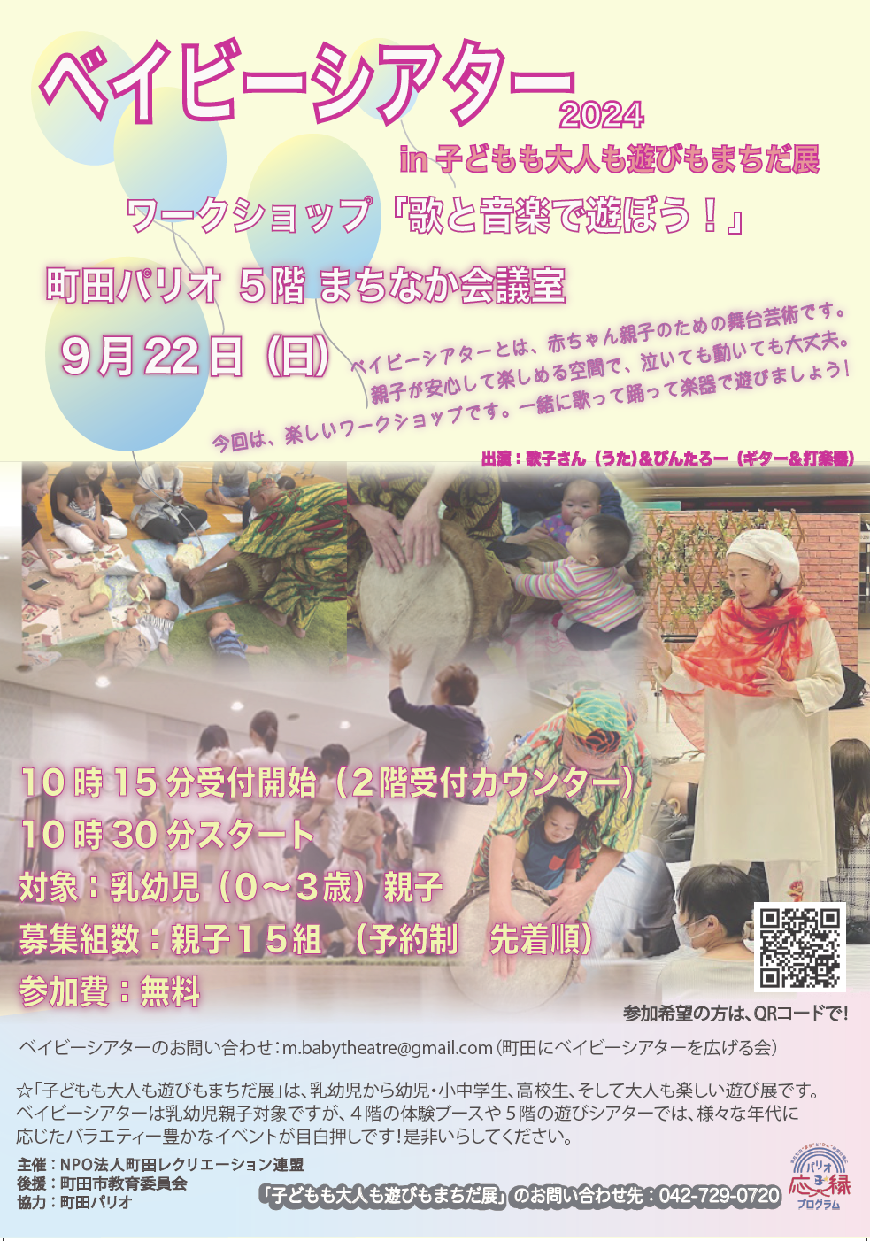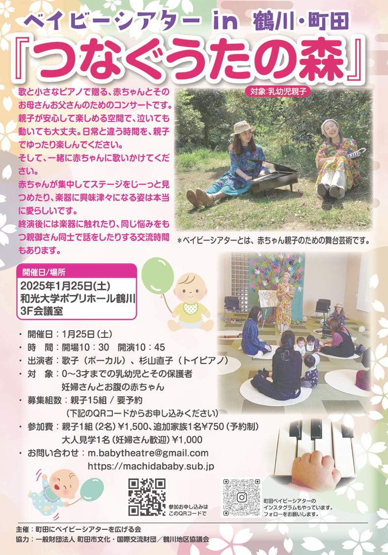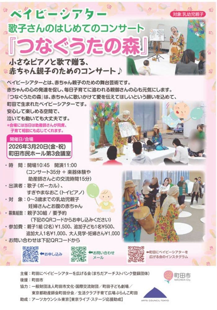 私たち、『町田にベイビーシアターを広げる会』では、赤ちゃんが最初に出会うアートが質の良いものであり、子育てを孤立化させないためのネットワークの中でベイビーシアターが上演されることを目指して活動しています。