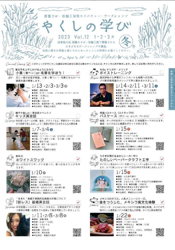 追加大人1名¥1,000、 大人見学・妊婦さん¥1,000