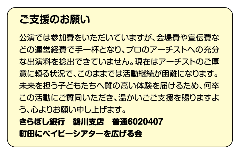 主催 : 町田にベイビーシアターを広げる会(まちだアーチストバンク登録団体)